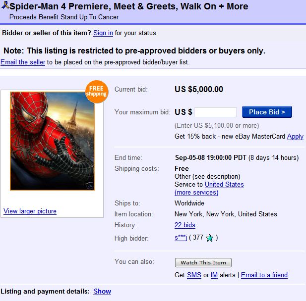 당신도 "스파이더맨4"에 출연할 수 있다! 단, 돈만 있다면...