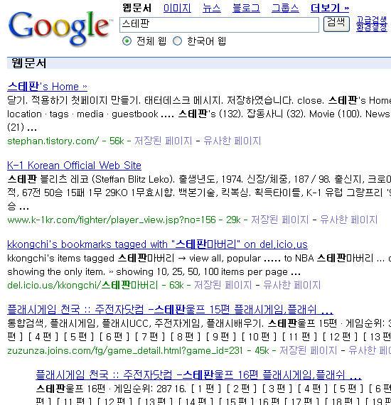 아도니스님의 글 을 보고, 저도 구글에 들어가서 제 닉네임이자, 블로그명인 "스테판"으로 검색을 해보았습니다.